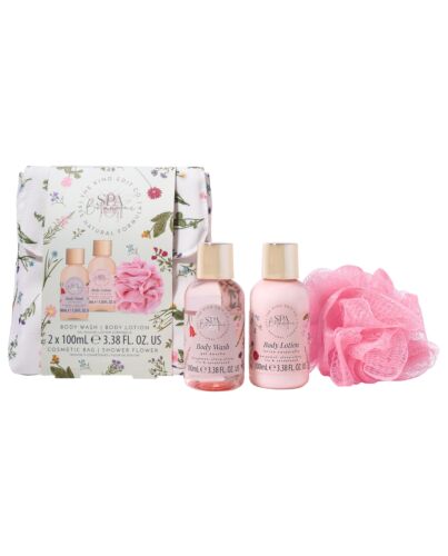 The Kind Edit Co. Spa Botanique Mini Shower Gift Set 100ml Body Wash + 100ml Body Lotion + Shower Flower + Bag