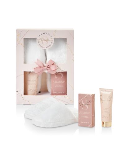 The Kind Edit Co. Signature Slippers Gift Set 150ml Body Wash + 100g Bath Crystals + 1 Pair Slippers